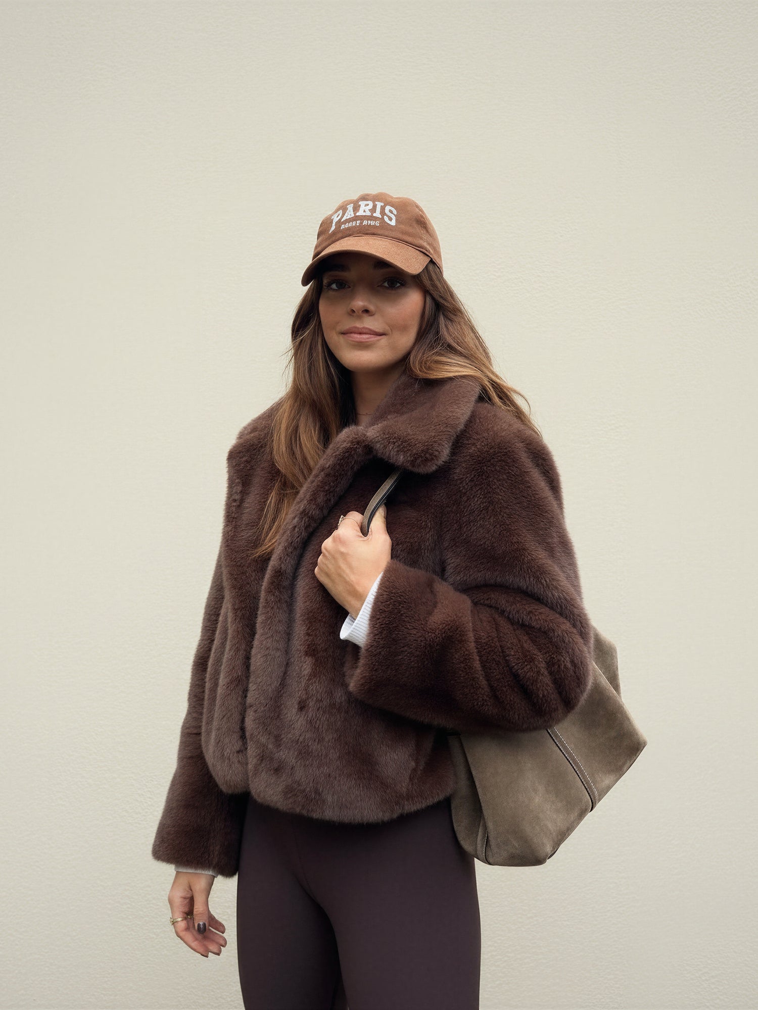 Wrap yourself in understated luxury with this plush faux fur jacket, designed to bring warmth and elegance to your Autumn and Winter wardrobe. Crafted in a deep chocolate-brown tone, it features a soft, voluminous texture that exudes sophistication while remaining effortlessly wearable. The loose lapel and tailored structure offer a flattering silhouette, perfect for layering over both casual and evening looks. Whether paired with denim or a sleek dress, this piece adds instant polish and comfort to any outfit.