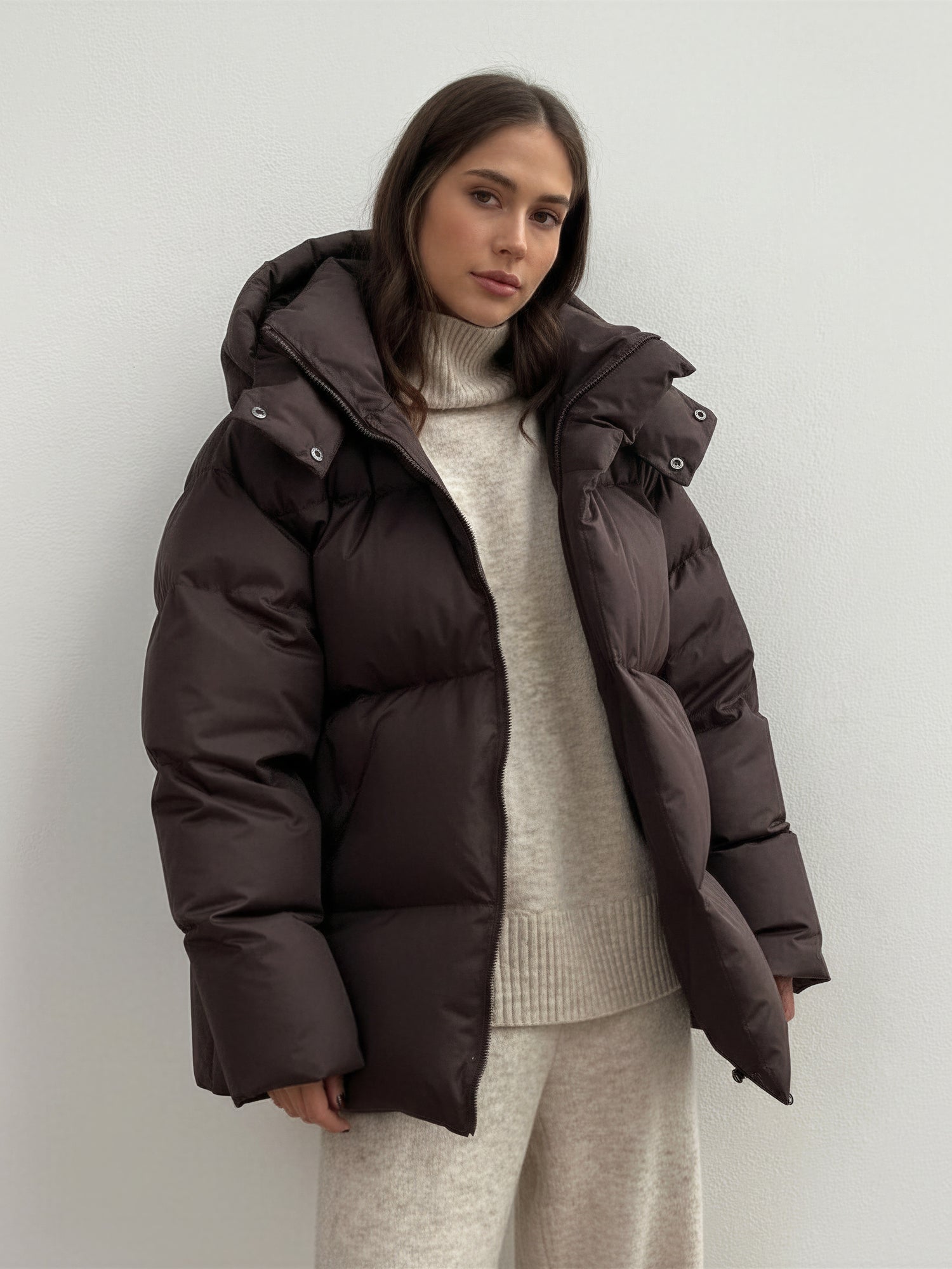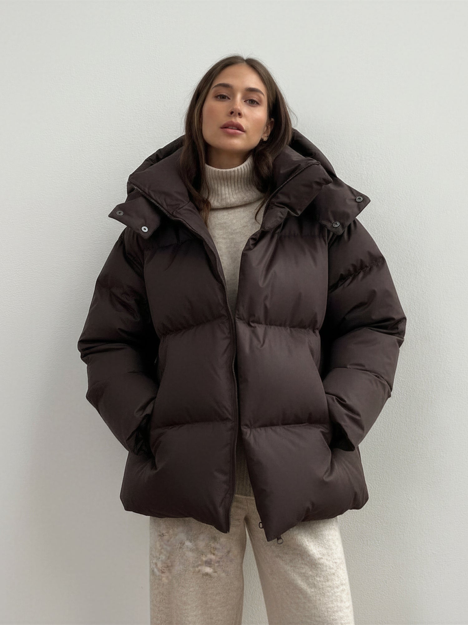 Stay warm in style with this modern puffer jacket featuring a detachable hood for versatile wear. The oversized fit and high collar add both comfort and a sleek, structured look. Designed for everyday use — from city strolls to outdoor adventures.