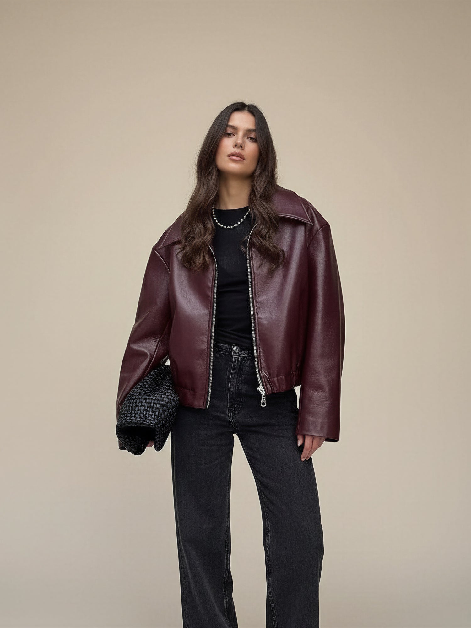 This vegan Faux leather jacket captures the essence of effortless autumn style. Its oversized fit and smooth texture make it both comfortable and chic — ideal for layering over casual or dressed-up looks. Designed with a modern twist on a biker silhouette, it adds confidence and edge to any outfit.